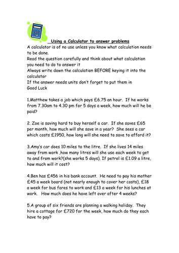 Calculator Worksheets | Practice Questions and Answers | Cazoomy Using A Calculator worksheet 1 practices displaying a full calculator display. Using A Calculator worksheet 2 contains more complex problems on a calculator display. Using A Calculator worksheet 3 involves tricky problem solving questions. Using A Calculator worksheet 4 practices the conversion of money to a calculator display. Using A Calculator worksheet 5 involves converting calculator ... - Free Printable Math Worksheets Free Math Worksheets, Calculators and More! Serving the web's best printable worksheets to millions of teachers, tutors and parents since 2008! Do the Worksheets Try the Calculators Print the Printables Free math worksheets - Homeschool Math Here you can generate printable math worksheets for a multitude of topics: all the basic operations, clock, money, measuring, fractions, decimals, percent, proportions, ratios, factoring, equations, expressions, geometry, square roots, and more. We also offer pages that list worksheets by grade levels (grades 1, 2, 3, 4, 5, 6, and 7).